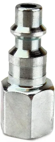 1/4" hembra NPT, estilo industrial, aire comprimido, enchufe de acoplamiento rápido. Este es un enchufe de acero resistente que cuenta con un revestimiento de tipo cromo anodizado. Este tapón de acero dura más que la competencia de latón ya que el latón se desgasta, se raya y se abrocha fácilmente. Este enchufe es más resistente a caídas accidentales y daños por arrastrar mangueras de aire y uso. Estilo de intercambio industrial