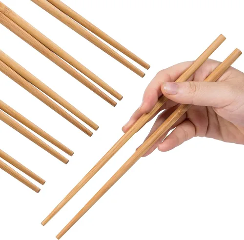 Palillos de bambú natural de alta calidad: los palillos de bambú natural de alta calidad son una mejor opción para las personas que desean una opción ecológica y libre de toxinas para los utensilios. El bambú es un recurso renovable que crece más rápido que muchos otros tipos de árboles y no requiere fertilizantes ni pesticidas para cultivar. Como resultado, es una opción sostenible y respetuosa con el medio ambiente. Juego de 10 pares de palillos adecuados: cada juego viene con 10 pares de palillos idénticos, por lo que es ideal para familias y grupos o para regalar. 9.8 in/9.8 pulgadas, peso: 5.61 oz por 10 pares; palillos reutilizables para cocina y hotel, adecuados para la familia, viajes, camping y fiesta de festivales. Buen tamaño para adultos y adolescentes. Palillos reutilizables: estos palillos también pueden soportar un uso intensivo. No se astillan ni se rompen fácilmente, lo que los convierte en una opción práctica y económica para las personas que usan palillos de forma regular. Son ideales para comidas familiares, entretener a los huéspedes y para su uso en restaurantes que sirven sushi u otra cocina asiática. SIN SPLINTERS: los palillos de bambú son fáciles de limpiar y requieren un mantenimiento mínimo. Proporcionan una superficie lisa y pulida que no atrapa los alimentos, lo que los convierte en una opción higiénica para el servicio de alimentos. También son aptos para lavavajillas, por lo que puedes cuidarlos fácilmente con tus otros utensilios de cocina. Maravillosa elección: los palillos de bambú natural de alta calidad ofrecen un diseño ligero y ergonómico que los hace fáciles de usar durante largos períodos. A diferencia de los palillos de metal o plástico, los palillos de bambú no son demasiado pesados, lo que los convierte en una opción cómoda para todo tipo de comensales. Son una excelente opción para cualquier persona que quiera una solución simple y orgánica para comer sus alimentos favoritos.