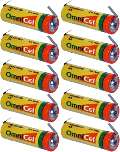 10 pilas de litio OmniCel ER14505HD de 3.6 V AA con pestañas para uso con sistema de lectura automática de medidores, estación de comunicación