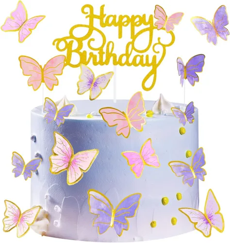 100 piezas de adornos para pastel de mariposa: El paquete incluye 100 piezas de alegres adornos para pastel de mariposa en 3D con 1 pieza de adorno para pastel de feliz cumpleaños. Adorno para pastel de mariposa 3D: Los adornos para pastel de mariposa se pueden doblar ligeramente hasta la forma 3D, las alas adornadas con líneas doradas, mariposas vívidas y vibrantes hacen que tu pastel sea más atractivo. Aplicación múltiple: el adorno de mariposa 3D de aspecto realista, que se puede aplicar para adornar pasteles, cupcakes, postres, pastelerías, cuencos de frutas, y el adorno de mariposa también puede ser decoración DIY, decorando tu escritorio, pared, cama con pegamento de puntos. Material seguro y no tóxico: hecho de papel limpio y grueso, puede presentar perfectamente la forma de la mariposa, puedes fijar directamente los adornos para pasteles al pastel. Decoración romántica de pastel: La mariposa representa el romanticismo y la felicidad, puede añadir vitalidad a cumpleaños, fiesta, celebración, ceremonia, fiesta temática de mariposas, etc.