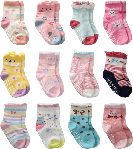 12 pares de calcetines de agarre para niña, antideslizantes, de algodón, antideslizantes para niñas
