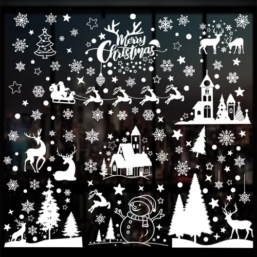 Elementos clásicos de Navidad: 9 hojas para un juego (29.5cm*19.5cm/11.6"*7.6"). Estas calcomanías de Navidad para ventanas incluyen un total de 148 elementos de patrón de Navidad, como Papá Noel, copos de nieve, árbol de Navidad, castillo, muñeco de nieve, ciervo, corona, eslogan de "Feliz Navidad", etc., que son muy visibles y adecuados para la decoración de ventanas de Navidad, llenos de ambiente navideño Diseño de doble cara: estos adhesivos de Navidad para ventanas de vidrio tienen impresión de doble cara, ambos lados de la calcomanía de ventana de Navidad se pueden unir. Puedes ver estas bonitas calcomanías de Navidad ya sea en el interior o en el exterior. Estas calcomanías de Navidad para niños crean un país de las maravillas de invierno Material: PVC de alta calidad para ventana, no tóxico, sin pegamento, respetuoso con el medio ambiente, impermeable, reutilizable, seguro para niños y niños. ¡Puedes reutilizarlos en la próxima temporada de Navidad! Solo recuerda guardar el soporte que aparecieron y guardarlos en un lugar fresco Amplias aplicaciones: estas calcomanías de pared de Feliz Navidad son adecuadas para fiestas de Navidad, decoraciones de interiores de vacaciones, decoración de Navidad para el hogar. También son regalos divertidos para tus amigos y familiares. Las calcomanías de Navidad también se pueden decorar en ventanas, espejos, vidrio, escaparates, oficina, restaurante, puertas de casa, etc Instrucciones: 1. Limpia el lugar donde quieras pegar; 2. Rocíe un poco de agua sobre la superficie; 3. Retire la calcomanía del papel de respaldo y colóquela en la superficie lisa, y luego ajústela a la posición correcta; 4. Empuja las burbujas y ampollas en el adhesivo con una tarjeta; 5. Utiliza un paño limpio para secar las ampollas en el borde de la calcomanía
