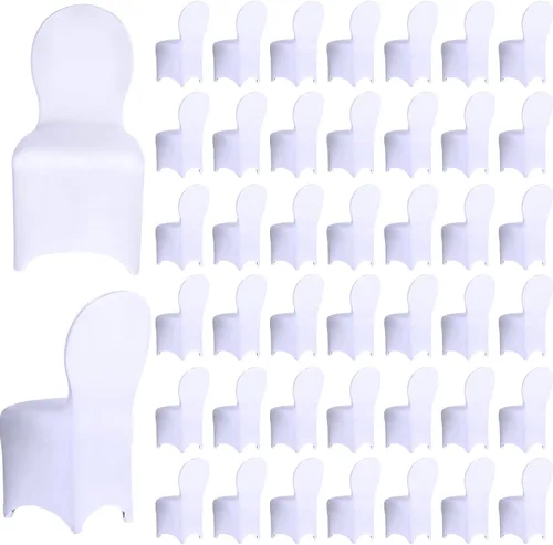 150 fundas blancas para sillas de banquete, de poliéster, parte delantera plana, de elastano, elástica, protector elástico para silla, para bodas