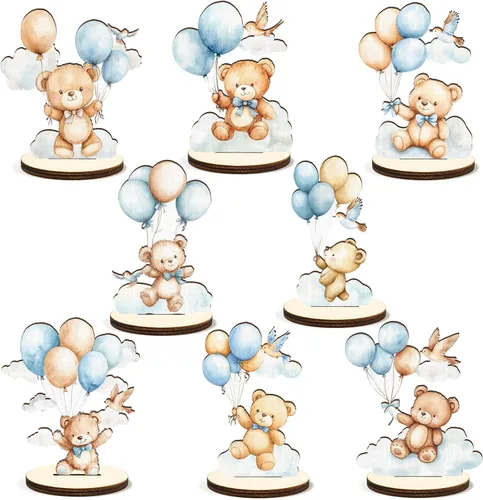 Set de centros de mesa de osos azules para baby shower: Recibirás 16 piezas de recortados de osos azules de madera (8 estilos, 2 piezas de cada estilo), cantidades suficientes para satisfacer tus necesidades de decoración y combinación diversificadas, diseño lindo que puede iluminar fácilmente tu baby shower o fiesta de cumpleaños con tema de osos. Detalles del tamaño: Estas decoraciones de centros de mesa de osos de madera vienen con un tamaño de aprox. 2.36 pulgadas x 3.15 pulgadas / 6 cm x 8 cm, haciéndolos muy fuertes y estables para servirte durante mucho tiempo. Diseño delicado: los bonitos recortes de madera pintados con osos están diseñados con colores brillantes, los osos en varias formas y posturas son muy lindos, son encantadores y animados, añadiendo un ambiente cálido y feliz a tu fiesta. Material confiable: los adornos de mesa para niños están hechos de madera de calidad, claramente impresos con oso de buenas noches en ambos lados, no son fáciles de romper o rasgar, cada uno está equipado con un soporte para facilitar su exhibición, lo que permite colocarlos y que se mantengan en la parte superior de las mesas, ideal para decorar mesas de fiesta o como regalos, añadiendo una atmósfera cálida. Ocasiones aplicables: nuestros recuerdos de baby shower de oso son adecuados para muchas ocasiones, como baby showers, revelación de género, cumpleaños, fiestas temáticas de animales, camping, eventos escolares, bodas, etc. Son buenas opciones para decorar la mesa, el hogar, el dormitorio y la guardería, añadiendo un ambiente festivo.