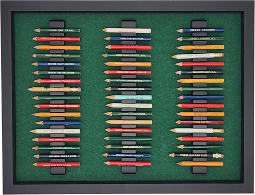 Calidad y durabilidad premium: la vitrina de lápices de golf 18hills está fabricada por expertos con madera de álamo de alta calidad, lo que garantiza una durabilidad duradera para mostrar tu colección de lápices de campo de golf para toda la vida. Diseño elegante y tamaño perfecto: con su diseño elegante y compacto que mide 17.4 x 13.7 x 1.25 pulgadas, nuestro soporte para lápices proporciona una pantalla elegante para hasta 51 lápices de golf. Su acabado cereza o negro añade un toque de sofisticación a cualquier espacio. Regalo ideal para entusiastas del golf: sorprende a tu familia, amigos o papás amantes del golf con este exclusivo estuche para lápices. Es el regalo perfecto para aquellos que coleccionan lápices de campo de golf como recuerdo, mostrando sus preciadas posesiones con estilo. Fácil instalación y versatilidad: la vitrina 18hills cuenta con dos prácticos agujeros recortados en la parte posterior y viene con accesorios incluidos, por lo que es muy fácil de colgar en cualquier pared. Ya sea en una oficina en casa, sala temática de golf o casa club, se adapta perfectamente a cualquier decoración. Preserve recuerdos preciosos: nuestro soporte para lápices le permite mostrar y preservar con orgullo los recuerdos asociados con cada visita al campo de golf. Muestra tu colección y recuerda las rondas memorables de golf que has disfrutado, todo mientras añade un toque de elegancia a tu espacio.