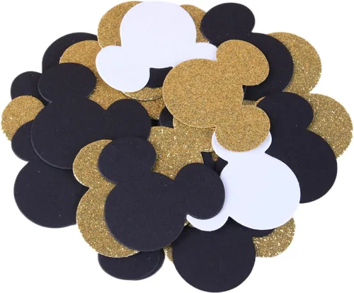 💖Confeti para dispersar en tu mesa de pastel, colocar dentro de invitaciones o tarjeta de cumpleaños, fijar a accesorios de fotos o decorar mesas de fiesta. 💖Incluye un total de 100 piezas, confeti de Mickey Mouse con purpurina negra, blanca y dorada. Las orejas miden aproximadamente 2 pulgadas de alto. 💖 El confeti de Mickey Mouse con purpurina negra blanca y dorada se puede utilizar directamente.
