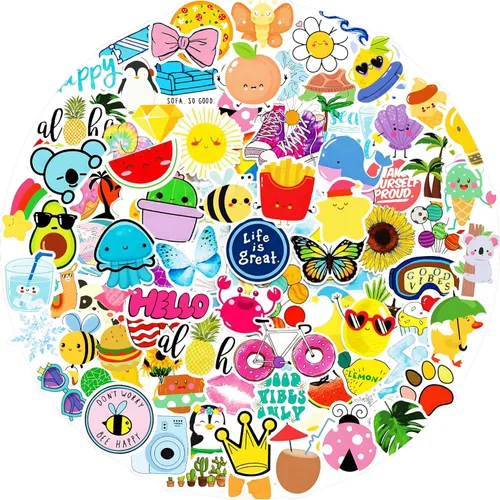 200 piezas de calcomanías de verano para niños, paquetes de calcomanías de vinilo estético para botellas de agua, laptop, computadora, monopatín,