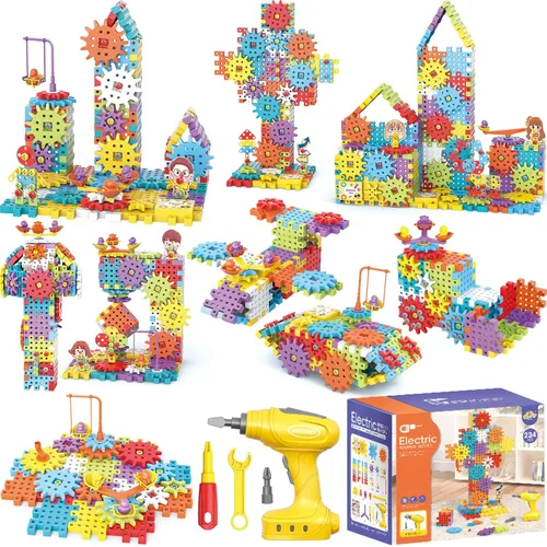 234 bloques de construcción Montessori eléctricos para niños pequeños de 3-5, 4-8, juguete de construcción de engranajes motorizados con taladro