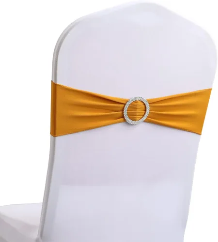 ¿Para qué sirve Bandas elásticas de elastano para silla, 30 unidades, lazos con hebilla deslizante, decoración de bodas, fiestas, recepciones, banquetes (dorado)?
