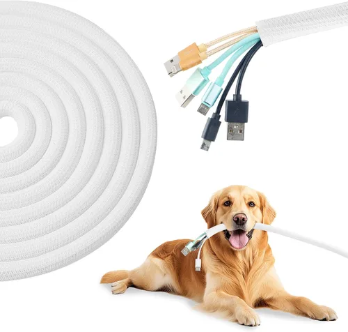 Protección duradera para cables: fabricado con material de polietileno de alta calidad, este tubo protector de cables de 3/8 pulgadas ofrece una excelente protección contra la abrasión, el desgaste y mascotas como gatos que aman masticar cables. Diseño flexible y dividido – El diseño pre-ranurado permite una fácil inserción de cables mientras mantiene la flexibilidad, haciéndolo ideal para agrupar cables desordenados y mejorar la gestión de cables en hogares u oficinas. Longitud perfecta para uso en el hogar y la oficina: con 25 pies de funda para cable, este producto es lo suficientemente largo como para administrar cables para centros de entretenimiento, configuraciones de computadora, escritorios de oficina y mucho más. Solución resistente a mordidas de mascotas – Mantén tus cables a salvo de mascotas curiosas. Este tubo trenzado actúa como una barrera eficaz para disuadir a los gatos o animales pequeños de morder los cables expuestos. Acabado blanco limpio para un aspecto moderno: el elegante color blanco complementa la estética moderna del hogar o el espacio de trabajo, combinándose perfectamente con paredes, escritorios o zócalos de colores claros.
