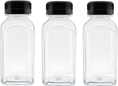 Paquete económico: el paquete incluye 3 botellas de plástico y 3 con tapa negra a prueba de manipulaciones. Tamaño de las botellas de plástico: la boca de la botella es de 1.5 pulgadas de ancho, 5.1 pulgadas de alto y 2 pulgadas de ancho. Plástico resistente: nuestras botellas de jugo de plástico están hechas de materiales PET de grado alimenticio, que son insípidos, resistentes a las caídas y no son frágiles. Nuestras botellas de jugo no son adecuadas para lavavajillas, se recomienda lavar a mano y la temperatura de uso no exceda los 149.0 °F. MULTIFUNCIÓN: Adecuado para almacenar bebidas caseras, como zumo de frutas, leche, café, etc., incluso puede utilizarlas para decorar ceremonias de graduación y fiestas de cumpleaños. No utilices calefacción por microondas. Garantía de calidad: cada producto de nuestros MYYZMY ha sido cuidadosamente seleccionado e inspeccionado, estamos comprometidos a proporcionar a nuestros clientes una experiencia de compra de calidad.