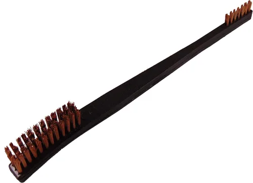 Mango de plástico negro prácticamente irrompible de 7 pulgadas. Extremo de bronce de cerdas gruesas para una limpieza agresiva. Extremo fino de bronce capaz de apretar en lugares difíciles de alcanzar. Cepillo de limpieza perfecto para todo tipo de armas. Type-III Products es una pequeña empresa propiedad y operada por veteranos