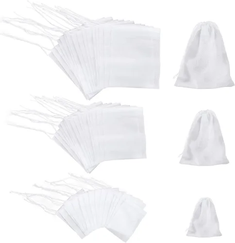 Fácil de llenar y quitar, uso desechable. Ten la seguridad de que filtrar las bolsas de té no contaminará el sabor del té. Por favor, no pongas las cosas demasiado llenas, dejando espacio para la preparación y la hinchazón. Paquete y tamaño 300 piezas bolsas vacías desechables 1.6*3.1 in
