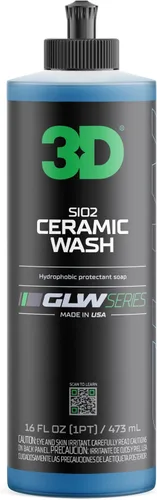 Tecnología avanzada SIO2: Infundido con dióxido de silicio de alta calidad (SiO2), este jabón cerámico de lavado y encerado crea una capa hidrofóbica duradera que aumenta el brillo, repele el agua y protege la pintura del grabado, la suciedad y los contaminantes, todo mientras lavas Experiencia de lavado sin arañazos y suave: Diseñado con polímeros de hiperdeslizamiento para el lavado más suave posible. Tu guante o toalla se deslizará por la pintura como mantequilla, reduciendo la fricción y el riesgo de remolinos para que tu pintura se mantenga impecable y protegida cada lavado Max Espuma Sin Desprendimiento Todo Brillo: Fórmula súper espumosa y neutra en pH, que elimina la suciedad, la mugre y la película de la carretera sin comprometer las ceras, los selladores o los revestimientos de cerámica. Perfecto para lavados de mantenimiento regulares que mantienen tu vehículo con un aspecto de sala de exposición impecable Lavar y Proteger en un Solo Paso Fácil: Ahorra tiempo y obtén resultados de nivel profesional en tu propia entrada de garaje. Esto no es solo jabón, es un lavado de cerámica todo en uno que limpia y sella, dándote un brillo duradero que llama la atención cada vez que sales a la carretera Parte de la serie 3D GLW: únete al movimiento con la serie GLW por 3D. Diseñado para detallistas que viven para el brillo y los aficionados al bricolaje que esperan más. Cada producto se basa en tecnología y rendimiento: sin trucos, solo ese aspecto ultra húmedo e hiper limpio