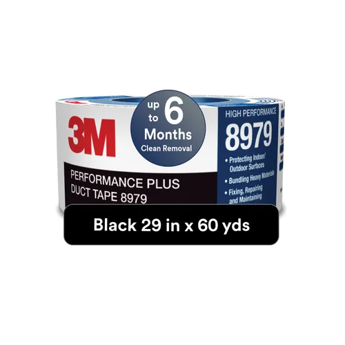 Construida con película de polietileno laminada a tela con un adhesivo de goma, esta cinta resiste el rizado y se rasga el rollo limpiamente para una fácil aplicación en superficies rugosas. La cinta adhesiva 3M Performance Plus 8979 tiene una construcción única que permite aplicaciones en interiores y exteriores. Es extraíble con poco o ningún residuo adhesivo hasta seis meses después de la aplicación. La cinta se ensayó para la propagación de la llama usando el método de ensayo UL723, ASTM E84 y se puede usar a temperaturas tan altas como 200°F durante hasta 30 minutos. Esta resistente cinta reforzada con tela se puede arrancar del rollo a mano y se pega al instante, proporcionando una amplia gama de soluciones convenientes.