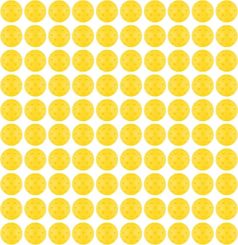 Aviso: comprueba si el número y el color de Pickleballs son consistentes con tu compra. Si no, háznoslo saber por Yaxa. Obtendrás: 100 bolas de pepinillo verdes, 1 bolsa de malla (obtendrás una bolsa de malla cuando compres más de 20 bolas de pickleball a granel: 20 piezas incluidas) [Pickleball ligero y portátil] Las bolas de pickleball de 40 agujeros para exteriores miden solo 0.92 oz y un diámetro de 2.9 pulgadas (2.913 in). Perfecto para la práctica de pickleball y jugar con pelotas deportivas. Si compras más de 20 bolas de pepinillo (incluidas 20 unidades) obtendrás una bolsa de malla portátil. Puedes poner las bolas de pickleball en la bolsa fácilmente para jugar en interiores o exteriores según lo necesites Bola de reacción llamativa: los colores verde brillante o amarillo garantizan que las bolas de pickleball para exteriores e interiores sean más fáciles de rastrear incluso en diversas condiciones de iluminación. Mejora el tiempo de reacción de entrenamiento de pickleball y reduce la frecuencia de recoger la pelota. [Adecuado para cualquier cancha y palas] Sea lo que sea que tengas experiencia en el entrenador de pickleball o principiantes, puedes llevar más fácilmente las pelotas de pepinillo a cualquier lugar que necesites: cancha de pickleball y cancha de pelotas de tenis y juego de pickleball de paddle smash patio trasero. Puedes utilizar diferentes tipos de paletas profesionales de pickleball para una mejor experiencia de juego de pelotas deportivas. Artesanía y durabilidad de alta calidad: las bolas de pickleball están hechas con material de polietileno de alta calidad a bola de plástico duro. Los materiales más duros mejoran en gran medida la resistencia al impacto para deportes y entrenamiento de pickleball al aire libre. Estas pelotas pueden soportar golpes repetidos incluso a diferentes temperaturas, asegurando un rendimiento duradero y una experiencia de juego