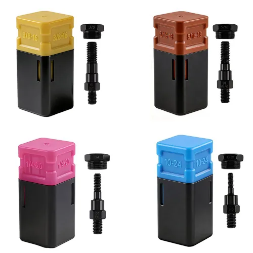 El poste de la tuerca remachadora y la tuerca conducen a la boca para que sea posible el montaje necesario están colocando a un lado juntos. Fácil de usar y evitar pérdidas. ¡Ahorra dinero y reemplaza el mandril de remache de tuerca en lugar de comprar un nuevo remachador! Se adapta a muchos remachadores de tuerca estándar. Hecho de acero de alta resistencia. El paquete incluye: 1 x 3/8-16, 1 x 5/16-18, 1 x 1/4-20, 1 x 10-24