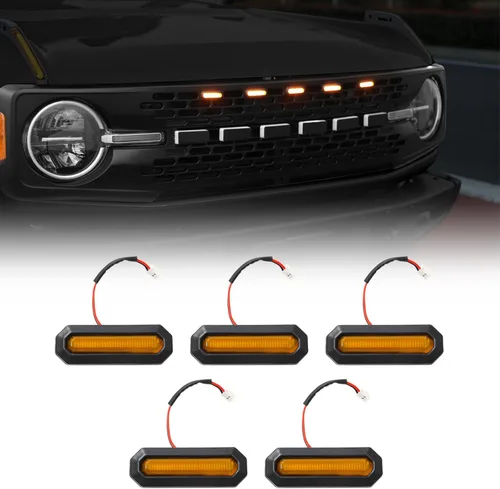 Mabett 5 piezas de luces LED de parrilla para accesorios Ford Bronco 2021 2022 2023 2024 2025 de 2/4 puertas, compatibles con Badlands Wildtrak &