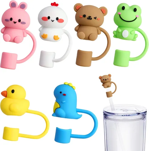 Diseño novedoso: gorras de paja con lindas formas de animales, incluyendo ranas, osos, conejos, patos, polluelos y dinosaurios. El paquete incluye 6 tapas de silicona para popote. Las pajitas y las tazas no están incluidas. Materiales de seguridad reutilizables: Hecho de silicona duradera de alta calidad, no tóxica, reutilizable y fácil de limpiar. Resistente a la deformación y a la rotura, asegurando un uso duradero. Protección de bebidas: Cubre perfectamente la pajita. Mantiene a los mosquitos fuera de tu bebida, manteniendo la higiene. Bonitos patrones que ayudan a distinguir las tazas. Compatibilidad perfecta: Adecuado para todas las pajitas con un diámetro exterior de 0.394 in/0,4 pulgadas. Ajuste seguro para evitar caídas fácilmente. Compacto y portátil, ideal para actividades al aire libre como caminar, acampar y picnics. Regalos prácticos: cuenta con un bonito diseño y facilidad de uso. Los adornos de paja se pueden fijar en el popote y colgar en el lateral después de abrir, evitando pérdidas. Regalo ideal para los amantes de las tazas en ocasiones como Halloween, Navidad, cumpleaños y eventos al aire libre.