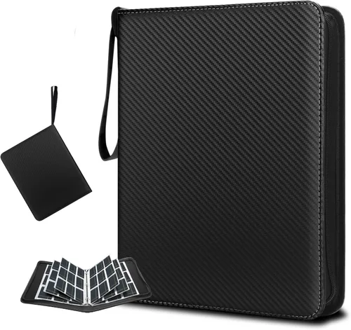 Premium Quality Material - Our trading card binder crafted from high-grade PU material for enhanced durability and a luxurious feel, which offers superior protection for your valuable cards. The surface is scratch-resistant, easy to clean, and ensuring long-lasting performance. The 3-ring buckle, made with stainless steel, allows for easy opening and closing without the risk of scratching your hands. The convenient design also allows for effortless addition or removal of card sleeves. Massive Storage Capability - Prepare to organize and showcase your extensive card collection with the HYMENEX football card binder. Featuring a 55 robust 9-pocket sleeves, which can hold up 990 cards, it’s the epitome of storage efficiency for trading cards, ensuring your favorites are neatly arranged and easily accessible. Ultimate Protection for Your Cards - Secure your treasures with confidence using our convenient design that prevents slippage and unwanted elements. A smooth-operating zipper encases your collection, safeguarding both the cards' condition and your privacy. Trust our card binder for comprehensive protection of your valuable cards. Portability Meets Convenience - With the baseball card binder, take your cards wherever adventure leads. Sporting a comfortable wristband for easy transportation, your collection is no longer confined to one place. Now, you can enjoy and share your passion for trading cards anytime, anywhere. Versatile and Accessible - This card collection binder isn’t just for trading cards; it's a versatile solution fit for all standard size collectibles. From sports cards to game cards and even small photos, our binder brings order and elegance to the display and storage of your cherished items.