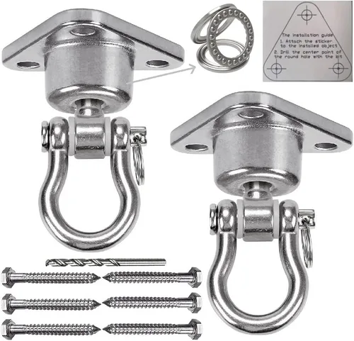 9M 2 juegos de ganchos giratorios de acero inoxidable liso, resistente 180°+360°, columpio giratorio de 1500 libras, capacidad de 1500 libras, juego