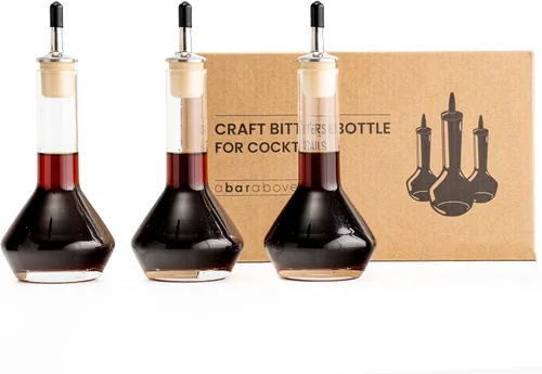 Set de Bar Profesional: Mejora tus cócteles como lo hacen los profesionales con la botella de vidrio de amargos de A Bar Above. Diseñada por bartenders expertos para trabajos de cóctel de alta gama, esta pequeña botella de vidrio es ideal para almacenar amargos aromáticos de Angostura, amargos de Peychaud, varios sabores de amargos como naranja y apio, u otros ingredientes de cóctel. Para una elaboración creativa de cócteles: nuestro set de amargos te permite un gran control al añadir ingredientes potentes a tus bebidas. Añade un toque de tus amargos favoritos, jugo de cítricos o un toque decorativo a tus Manhattans, Old Fashioneds, Sazeracs, swizzles, sours y más. ¡Un imprescindible para tu kit de cóctel anticuado! Apto para lavavajillas: Esta botella cuentagotas está fabricada con vidrio resistente y de alta calidad apto para lavavajillas para una limpieza fácil. Si necesitas cambiar los sabores de una botella a otra, no habrá ningún cruce de sabor. Es un práctico kit de cóctel para uso doméstico y comercial. Tapón a prueba de fugas: Nuestro juego de botellas de bitters de cóctel viene con un pico de vertido de acero inoxidable, con un sello hermético que evita fugas y es resistente a la oxidación. El corcho sintético incluido es apto para lavavajillas y casi indestructible. Regalos perfectos de barman para hombres y mujeres: Este set de bar es un gran regalo para el amante de cócteles en tu vida o como un regalo para ti mismo. Mejora tus habilidades de barman de básicas a fabulosas con las nuevas técnicas que este kit te ofrecerá.