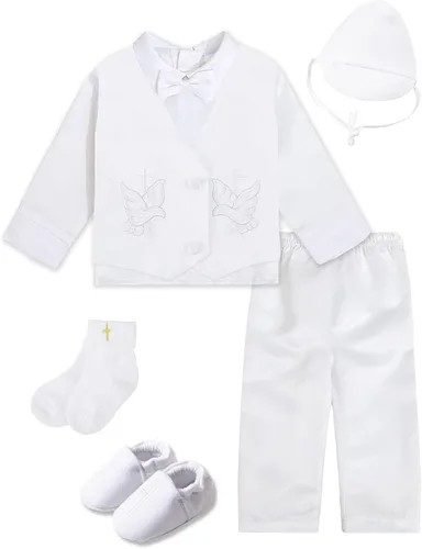 A&J DESIGN Traje de bautismo blanco para bebé niño de 3 a 18 meses de manga larga con cruz bordada
