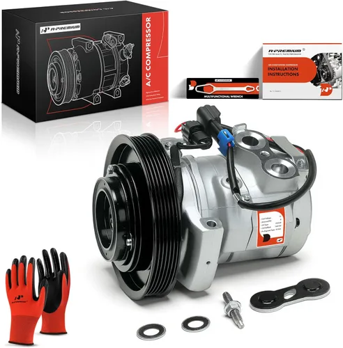 【Especificaciones】: ①Tipo de compresor: 10S15C; ②Embrea incluida: Sí; ③Tipo de aceite: PAG46; ④Aceite precargado: 160 ml (20 tolerancia); ⑤Tipo de refrigerante R: R-134a; ⑥Línea de medición (MM): 46; ⑦Puerto de descarga/aspiración (MM): 16; ⑧Diámetro de polea (MM): 159; ⑨Ranuras de polea: 6 [Ajuste del vehículo]: compatible con Freightliner Cascadia 2011-2017, Columbia 2015-2018; compatible con Western Star 3700 2000-2001, 3800 1989-1997/1999-2001, 4700SB 2012-2013/2015-2018, 4700SF 2012/2014/2016-2018, 4900EX 2002-2018 ¡Atención!: Solo es compatible con 6 ranuras, no con 8 ranuras [Número de referencia]: 2265772000, A2265772000, CO-29045C, CO29045C Compra con confianza: A-Premium ofrece una garantía de un año de kilometraje ilimitado en nuestro compresor de aire acondicionado meticulosamente elaborado. Ofrecemos una amplia variedad de categorías de accesorios automotrices, asegurando que puedas salir a la carretera con tranquilidad