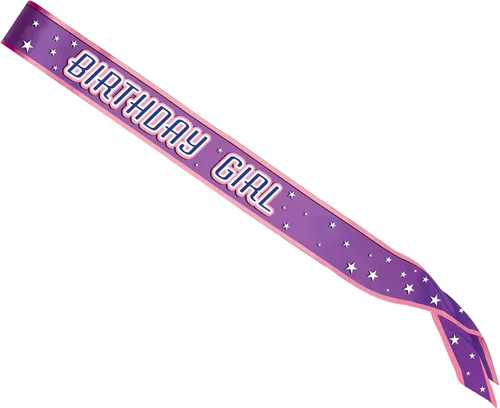 INCLUYE: 1 Faja de Satén "Birthday Girl" Talla única DETALLES: Banda púrpura y rosa con detalle de estrella blanca y "BIRTHDAY GIRL" escrita en letras rosas, blancas y azules Uso: Una gran manera para que una cumpleañera se sienta especial CELEBRA LA VIDA CON NOSOTROS: Desde 1900, la misión de Beistle Company ha seguido siendo la misma: ayudar a personas de todo el mundo a celebrar los eventos de la vida creando productos divertidos y de alta calidad utilizando los mejores materiales
