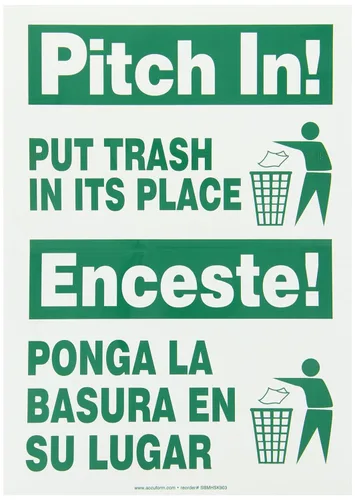 Pregunta sugerida sobre Accuform SBMHSK903VS - Letrero bilingüe español de vinilo adhesivo "Pitch in Put Trash in its Place/ENCESTE PONGA LA BASURA EN SU LUGAR ¿Este producto sí me sirve para lo que necesito?