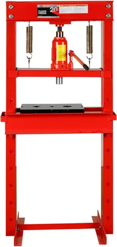 Compra prensa: la prensa de tienda de AFF tiene una capacidad de 20 toneladas diseñada para enderezar, doblar y quitar engranajes, rodamientos y bujes; construcción de grado industrial para mayor durabilidad Funciona eficientemente: gato de botella de 20 toneladas con carrera de 8 1/2 pulgadas y una placa de cabeza reforzada; resortes de retorno resistentes para una rápida retracción del ariete Ajustable: configuración de altura de la cama de 8 posiciones para flexibilidad del operador; Mantente seguro: la protección contra sobrecarga añade seguridad al operador y evita daños por presurización excesiva Aplicación ideal: uso automotriz e industrial ligero