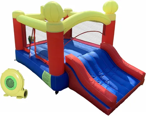 JOOLOOG - Castillo inflable inflable para saltar con tobogán, castillo hinchable para niños con soplador de aire deslizante, bolsa de transporte,