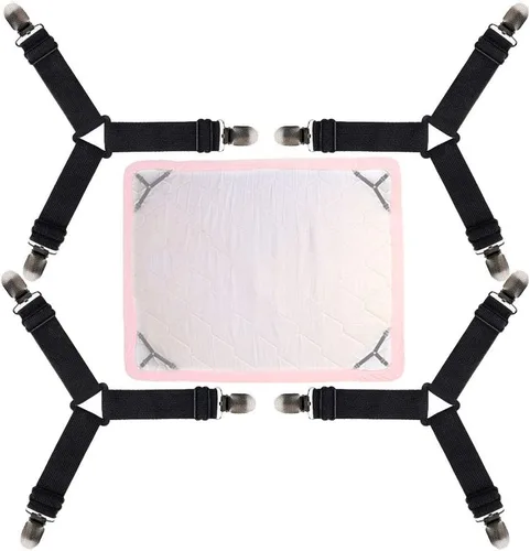 Deja que las sábanas se mantengan planas y fijas sin deslizarse, lo que te proporciona un ambiente de sueño más cómodo. Correas y clips elásticos de alta resistencia, sistema de enganche de nailon integrado protege la tela de daños. Sin pérdidas y mantiene las hojas firmemente en su lugar. Cierre ajustable y diseño triangular que hace que las correas se puedan utilizar en camas de diferentes tamaños, con tirantes de hojas queen, king y twin. Hecho de banda elástica de alta calidad y clips de metal cromado resistentes, duradero y de larga duración para sujetar las sábanas, termina la batalla entre usted y sus sábanas inmediatamente. Perfecto para sábanas, fundas de colchón, manteles de mesa, cubiertas de tabla de planchar, fundas de resbalones y mucho más.