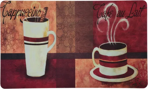 Impreso con imágenes rústicas con temática de café Material: Poliéster. Grosor: 0.197 in Dimensiones: 18"x30" Diseñado para durar mucho tiempo La parte trasera antideslizante mantiene la alfombrilla en su lugar