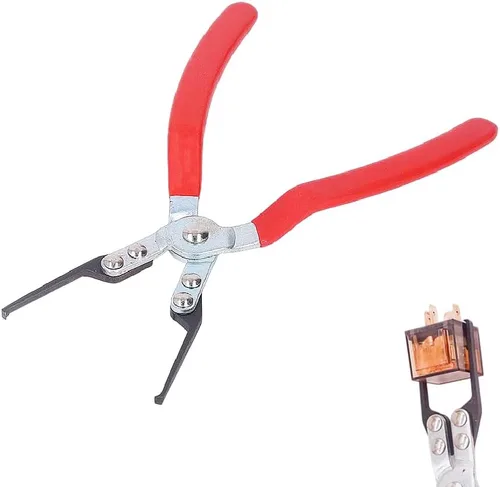 ➤[Aplicable]: alicates universales para quitar relés eléctricos y fusibles en vehículos. También funcionan en muchas aplicaciones industriales y de alta resistencia, las puntas finas y las asas desplazadas permiten un uso más fácil que los alicates tradicionales. ➤[Características]: la punta especialmente diseñada está en ángulo para adaptarse a ranuras o borde de la cubierta del relé. El mango y las puntas finas permiten el acceso a relés y fusible en áreas confinadas. ➤[Calidad perfecta]: esta herramienta de extracción de fusibles automotriz está hecha de metal forjado y está diseñada para mayor resistencia, construida para durar y longevidad. El mango está cubierto con una funda aislante suave roja, que es antideslizante y aislante. Muy ergonómico! ➤[Ampliamente utilizado]: estos alicates extractores de apertura máxima de las mordazas es de 4.2 pulgadas, la apertura mínima de las mordazas es de 0.63 pulgadas, las puntas finas y las asas desplazadas permiten un uso más fácil que los alicates tradicionales. El cabezal de la abrazadera es conveniente para entrar y salir de un espacio pequeño donde las manos humanas y otras herramientas no pueden alcanzar, y no es fácil dañar el relé y el fusible. ➤[El paquete incluye]: 1 alicates extractor de fusibles de relé.