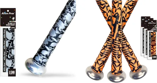 Fácil de instalar y ya precortado en menos de un minuto, tu bate se sentirá como nuevo con la cinta de agarre de bate de béisbol Alien Pros. Simplemente pela, envuelve, sella, juega Fuerte y confiable poder de agarre creado por jugadores de béisbol para jugadores de béisbol, la cinta adhesiva de bate de béisbol de 0.020 in se siente perfectamente en condiciones secas o húmedas sin deslizamiento Nos encanta o te devolvemos tu dinero en Alien Pros, nos esforzamos por ser el mejor agarre de cinta de murciélago de la galaxia, simplemente si no estás 101% satisfecho con tus agarres de murciélago háznoslo saber y lo haremos adecuado para ti Especificaciones de la cinta de bateo galáctica contiene 4 cintas de béisbol con el patrón en la imagen; el tamaño es de 1 pulgada de ancho, 47.2 pulgadas de largo, 0.02 pulgadas de grosor. Cada envoltura de murciélago está hecha de material altamente absorbente y ultraligero que proporciona la cantidad justa de adherencia mientras absorbe los golpes Compatibilidad universal, por supuesto, mejorará tu agarre de béisbol, pero eso no es todo, puedes usarlo absolutamente como agarre de bate de cricket, agarre de bate de sóftbol, agarre de lacrosse también