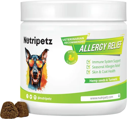 Masticables para alergias para perros – Alivio de la alergia para perros, apoyo para picazón y lamer las patas, suplemento natural para la piel y el