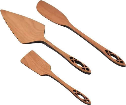 Pregunta sugerida sobre American Made - Juego de utensilios de postre de madera de cerezo silvestre de 3 piezas, colección de la catedral: servidor de pastel, palo ¿Qué incluye exactamente este set?