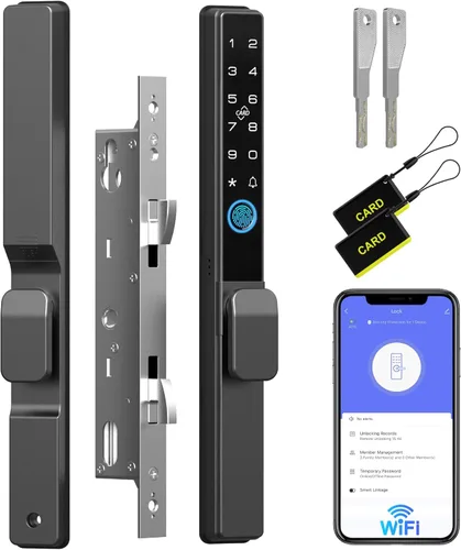 Comprueba la compatibilidad antes de comprar: adecuado para puertas de 13/15 pulgadas a 4-3/4 pulgadas (0.866 in a 4.724 in), y los marcos de puerta solo ≥1.6 pulgadas (1.614 in) de ancho se pueden instalar. Asegúrate de que la mortaja de bloqueo sea compatible con tu puerta. 5 formas de desbloqueo - Desbloqueo práctico: huella dactilar + código de acceso + aplicación móvil (control remoto WiFi) + tarjeta RFID + llave de repuesto. Todos los que necesitan acceso pueden elegir su forma de desbloquear. Protección múltiple - Alta seguridad: límite de entrada incorrecto: la cerradura se apagará durante 90 segundos después de ingresar 5 códigos de entrada no válidos o RFID, y la alarma de manipulación incorporada, proporciona múltiples protecciones para tu hogar. Alivia la ansiedad de la batería: bajo consumo de energía para garantizar 8 meses de duración de la batería, y tiene un recordatorio de batería baja, incluso si se queda sin batería, puede utilizar un banco de energía para energía de emergencia. Excelente atención al cliente: Anweller proporciona una garantía de 12 meses y soporte técnico gratuito de por vida, sin complicaciones para obtener un reemplazo o reembolso en 12 meses.
