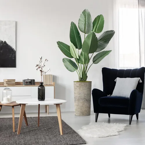 Árbol artificial en macetero con textura blanquecina, ave del paraíso artificial de seda para decoración del hogar en interiores y exteriores,