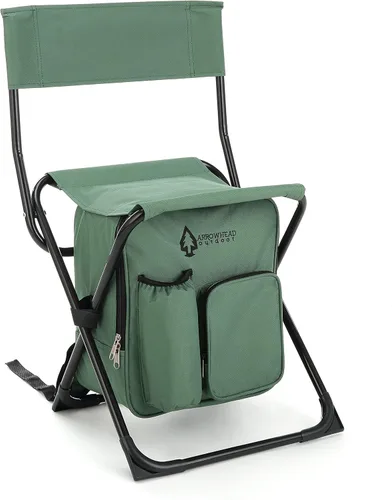 Arrowhead Outdoor Silla de campamento compacta multifunción 3 en 1: mochila, taburete y enfriador aislado, con soporte para botellas y bolsa de