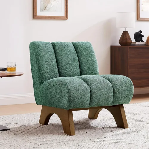 Art Leon Silla decorativa moderna, sofá modular de tela sherpa, silla individual sin brazos con patas de madera para sala de estar, dormitorio, verde