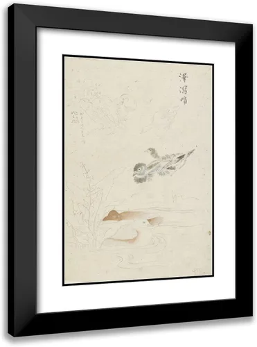 Artist: Ishikawa Kazan / Title: Water Birds (1800 - 1900) High Quality Framed Giclee Art Print Direct from Museum Prints Framed in a Black Modern Wood Frame with Double Matting by Crescent In Stock and Framed When Purchased Made in the U.S.A. and Satisfaction is Guaranteed