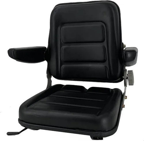 Tamaño: 15.4x15.0x18.9 in/15.4x 15x 18.9 (LXWXH). Este asiento está hecho de PVC de alta calidad. Este asiento de tractor universal de alta calidad tiene un fuerte marco de hierro. Su asiento y respaldo acolchados le asegurarán que pueda trabajar en su tractor con la máxima comodidad. El asiento de la carretilla elevadora está diseñado con un asiento plegable contorneado de ángulo trasero ajustable, comodidad. El asiento universal se adapta a muchos modelos de UTV, ATV, tractor, carrito de golf, etc.