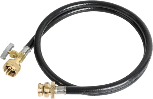 Conjunto de extensión de manguera de propano flexible de 4 pies. Ejecute su plancha, parrilla, calentador o incluso hoguera con el suministro principal de propano de su caravana. Esta manguera te permite Engánchate a un accesorio en T en tu RV. También funciona como manguera de extensión cuando se utiliza un árbol de propano o un cilindro desechable. El uso adicional de la manguera de extensión amplía tu espacio de actividad y te permite utilizar gas propano en un lugar más seguro. También podría funcionar con adaptador de recarga de propano para llenar un cilindro reutilizable de 1 libra desde un tanque más grande Manguera de extensión flexible universal funciona en cualquier aparato y cilindro estándar CGA 600. La manguera de extensión le permite conectar un pequeño aparato portátil a un poste de distribución o conector de conexión Y y T. También conecta el cilindro de propano de 1 libra a la estufa de campamento, calentador o parrilla de barbacoa. Compatible con antorcha de malezas, parrilla portátil, estufa de camping y otros electrodomésticos portátiles con conector de 1 libra. Diseñado con perilla de válvula de encendido/apagado de cierre. La válvula de control de aguja incorporada garantiza un funcionamiento seguro y conveniente, hecho de material de alta calidad, duradero de usar, adecuado para el ajuste del gas propano de alta presión. Manguera termoplástica duradera y accesorios de latón solo para gas LP. La goma duradera y el latón de larga duración proporcionan una conexión sellada para mayor seguridad. Montaje de manguera de extensión de propano de alta presión giratorio 1 "- 20 conector de rosca de cilindro macho x 1 "- 20 conector de rosca de cilindro desechable hembra. El puerto macho #600 (1"-20) se conecta a su electrodoméstico. El puerto hembra #600 (1"-20) se conecta al conector macho en la configuración de propano