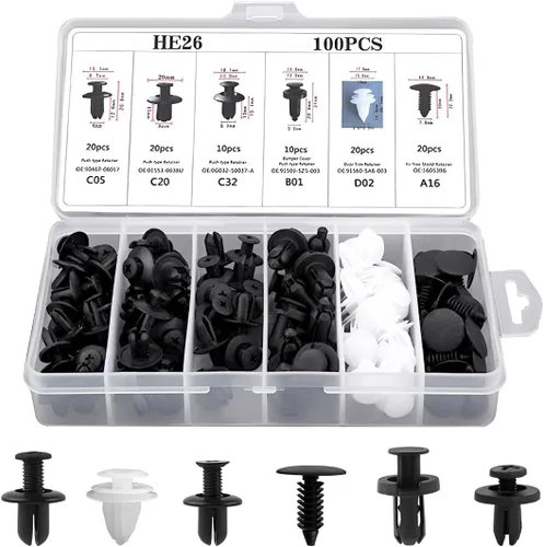 Material duradero: los clips de retención del parachoques del automóvil están hechos de materiales plásticos de alta calidad, que son fuertes y resistentes al desgaste, y no son fáciles de romper o dañar durante el uso. Es muy pequeño y ligero, lo que te permite desmontar rápida y fácilmente las partes de la carrocería del automóvil sin dañarlas. No se oxida y se puede utilizar durante mucho tiempo. Suficiente para que lo utilices: hay 6 tipos de sujetadores en el paquete, suficientes para que lo uses y cambies. Recibirás 20 piezas de 0.236 pulgadas, 20 unidades de 0.315 pulgadas, 10 unidades de 0.314 pulgadas x 10 piezas, 20 piezas de 0.315 pulgadas x 20 piezas y 20 retenedores blancos para puerta. Pueden ayudarlo a ahorrar tiempo, puede cambiar y usar estas piezas de automóvil durante mucho tiempo. 【Fácil de instalar】: Retire el clip viejo del automóvil con la herramienta de extracción, saque el nuevo clip y junte las dos partes del nuevo clip para completar la instalación. El proceso de instalación es muy simple y puede instalarlo usted mismo. Además, nuestros sujetadores de automóvil están equipados con cajas de plástico, que se pueden almacenar de acuerdo con diferentes tipos sin confusión. También es muy cómodo de usar, y puedes llevarlo contigo. 【Amplia aplicación】: este juego universal de abrazadera de empuje automotriz está ampliamente disponible para la mayoría de molduras automotrices, puertas, molduras de carrocería, parachoques, guardabarros, capó y otras piezas de automóvil. Hay 6 tamaños comunes en la caja, puedes elegir la pieza correcta de acuerdo a tus necesidades, en tantas opciones puedes encontrar fácilmente lo que necesitas. 【Cómodo de almacenar】: tamaño compacto, fácil de almacenar. Cada clip se puede colocar en el lugar correcto, cuando necesite usarlo se puede encontrar rápidamente. Si no lo usas por un tiempo, puedes ponerlo en tu automóvil y no ocupará mucho espacio. Estamos comprometidos a proporcionar productos y servicios de alta calidad a cada cliente. Puedes comprar con confianza.