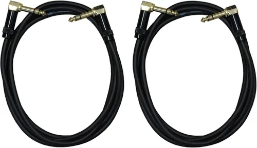 【Paquete de dos cables estéreo o equilibrados Pro-Audio】Paquete de dos cables TRS chapados en oro de 1/4 de pulgada en ángulo recto a TRS chapado en oro de 1/4 de pulgada en ángulo recto de alta calidad profesional de audio/parche/grabación o cables de audio estéreo Chapado en oro para transparencia de señal: conectores TRS de ángulo recto de 1/4 de pulgada chapados en oro para transparencia de la señal, durabilidad y fiabilidad; longitud total (incluyendo la longitud de los conectores): 12 pies Cables con cables puros sin oxígeno: cable de interconexión de audio con conductores de cobre sin oxígeno (OFC) para claridad de señal y escudo de señal en espiral de cobre sin oxígeno (OFC) para flexibilidad y rechazo efectivo de EMI y RFI Carcasa de metal con conector protector y chaqueta de PVC ultrasuave: configurada con una cubierta de PVC flexible ultra suave y toda la carcasa de metal de conector protector para máxima durabilidad, fiabilidad, fácil instalación y fiabilidad Conectores de ángulo recto para usos en áreas con espacio reducido: conectores TRS de ángulo recto de 1/4 pulgadas utilizados como cables de audio profesionales en áreas con espacio reducido