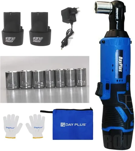 Potente llave de trinquete inalámbrica: el motor de 12 V puede entregar hasta 30 pies-libras (40 N.m) de torsión y producir una velocidad de 2300 rpm para quitar o instalar tornillos. Lo que la convierte en una herramienta perfecta para trabajos de construcción, automóviles y reparación del hogar. Fácil de usar: pesa solo 3.06 libras. Equipado con una cabeza de acero de aleación de 3/8 pulgadas y luz LED incorporada, ideal para trabajar en espacios reducidos y oscuros. Interruptor de avance y marcha atrás: interruptor de avance y retroceso en la cabeza del trinquete, te permite ajustar la dirección. "F" significa rotación hacia adelante, y "R" significa rotación inversa. Diseño humanizado: ★ Con agarre antideslizante para un agarre y trabajo fácil y cómodo. ★ Con práctico interruptor de bloqueo de seguridad incorporado. ★ 3 indica luces para mostrar la potencia de la batería. Kit de llave de trinquete todo en uno: viene con 1 llave de trinquete inalámbrica, 2 baterías de 1500 mAh, 1 cargador rápido, 1 guante, 1 bolsa de tela, 7 enchufes - 0.394 in, 0.433 in, 0.472 in, 0.512 in, 0.551 in, 0.591 in, 0.669 in. Puedes obtener todo lo que necesitas de nuestro kit de llaves de impacto.