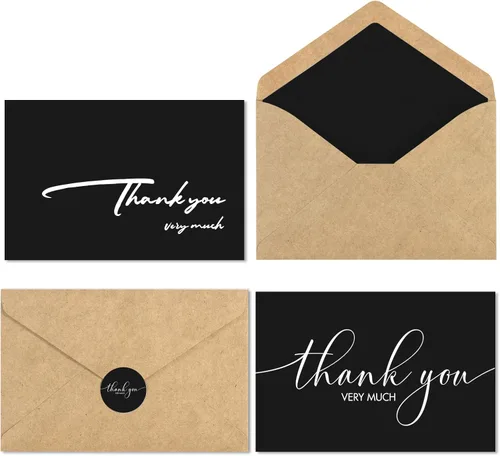 Calidad premium: utilizamos papel grueso de 10.58 oz/m², después de doblar e imprimir la tarjeta sigue siendo fuerte y duradera. Y viene con una caja exterior hecha de hojas de papel kraft, que se puede reutilizar y es ideal como decoración. Los sobres de papel kraft resistentes cuentan con un adhesivo a base de agua. Tarjetas de agradecimiento con sobres: incluye 24 tarjetas (4 fuentes), 24 sobres de papel kraft, 36 calcomanías (12 calcomanías más, puedes utilizar tantas como quieras). Caja exterior de papel kraft de alta calidad. Múltiples ocasiones: es perfecto para pequeñas empresas, bodas, despedidas de soltera, baby shower, fiestas de cumpleaños, aniversarios, funerales, reuniones de negocios, apreciación del cliente o cualquier otra ocasión durante todo el año. Tamaño para adaptarse a impresiones fotográficas: el sobre se adapta perfectamente a estas tarjetas de agradecimiento en blanco y impresiones fotográficas de 4 x 6 pulgadas. Las tarjetas están en blanco en el interior y tienen una cantidad perfecta de espacio para tu mensaje especial escrito a mano. Diseño único: el sobre viene con un forro de color sólido que hace eco de las tarjetas y calcomanías, y también puedes escribir en el forro. Las pegatinas hacen eco del diseño de la tarjeta y también vienen en 4 fuentes diferentes.