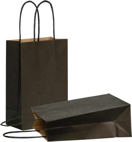 AZOWA Bolsas de regalo Mini bolsas de papel kraft con asas (4 x 2.4 x 6 pulgadas, negras, 25 unidades)